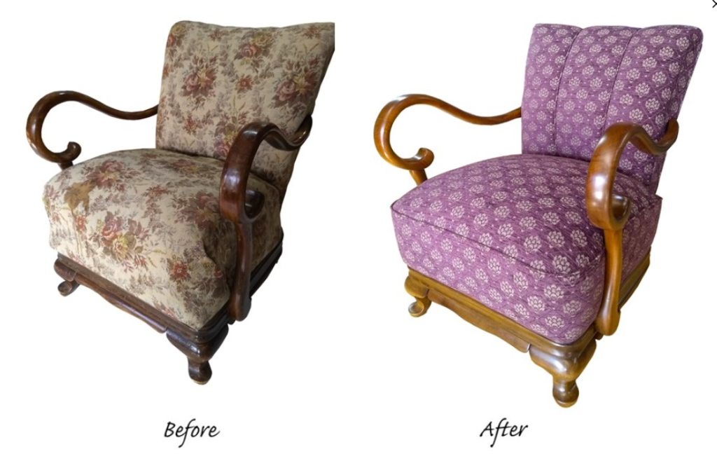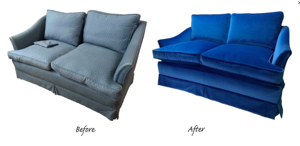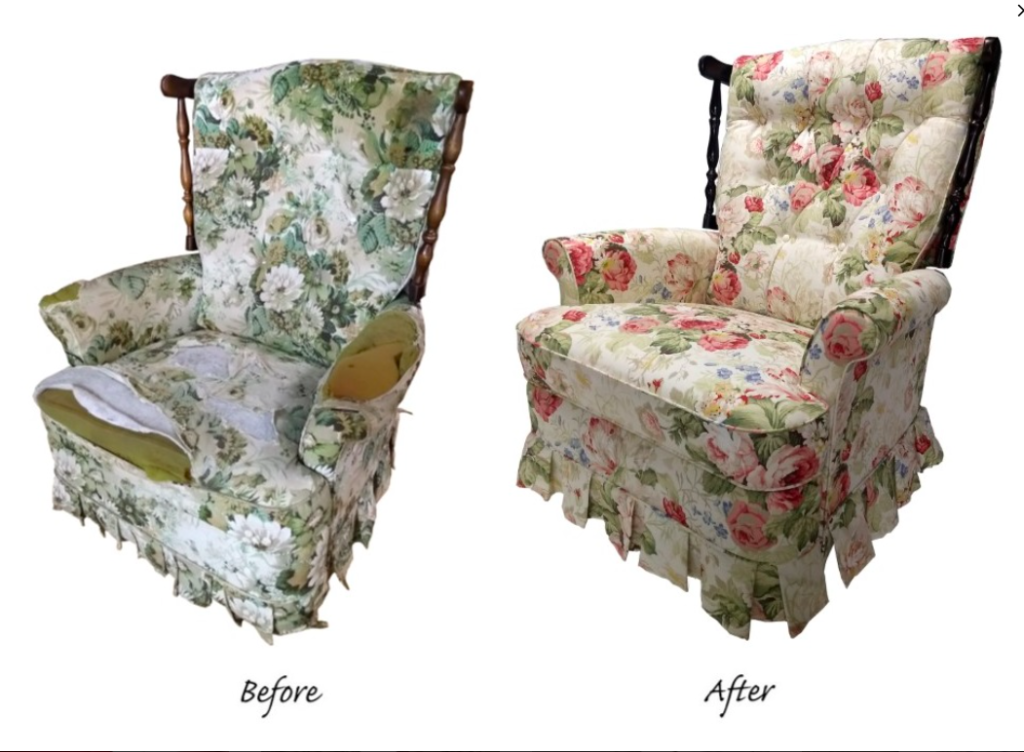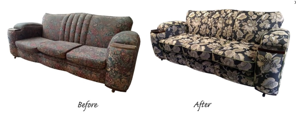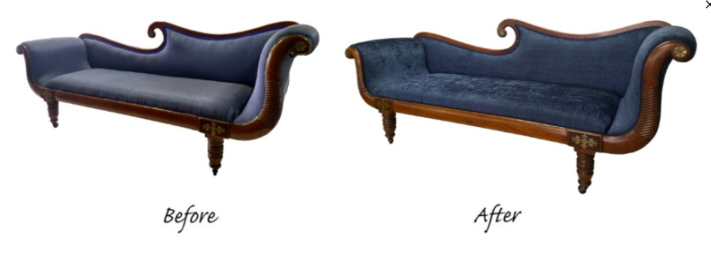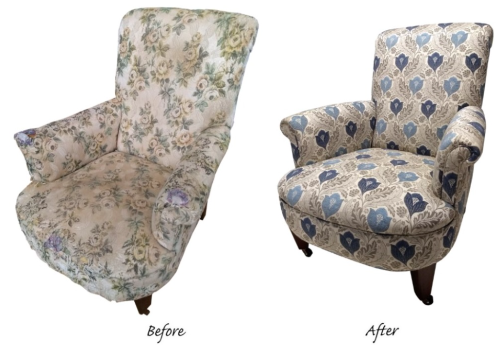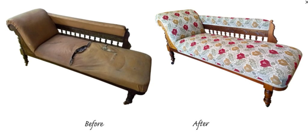 Here are some of the pieces of reupholstered furniture that we have done for our customers. You can find out the history and the interesting reupholstery story that is behind each of these “before” and “afters” in our Stories.